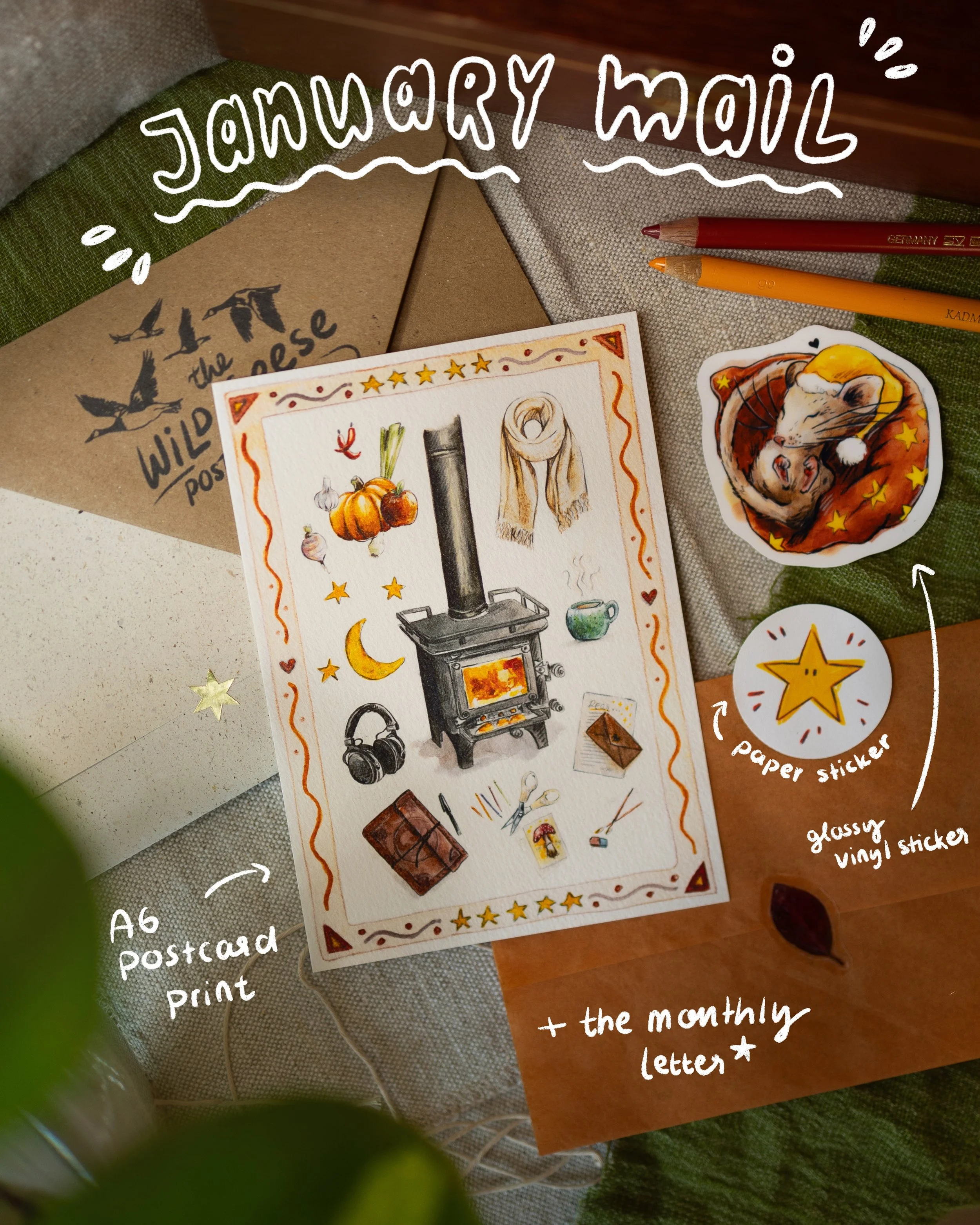 you sign up on 12 December for the December Mail, which will be send off in the first few days of January. Depending on your location, it can take anything between 2 days to a whole month to arrive - the charm of snail mail, right? 💌